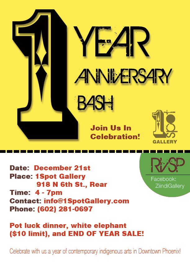 This Saturday, December 21, 2013, we will be celebrating our 1st year at 1Spot Gallery, peep the details and come join us!
